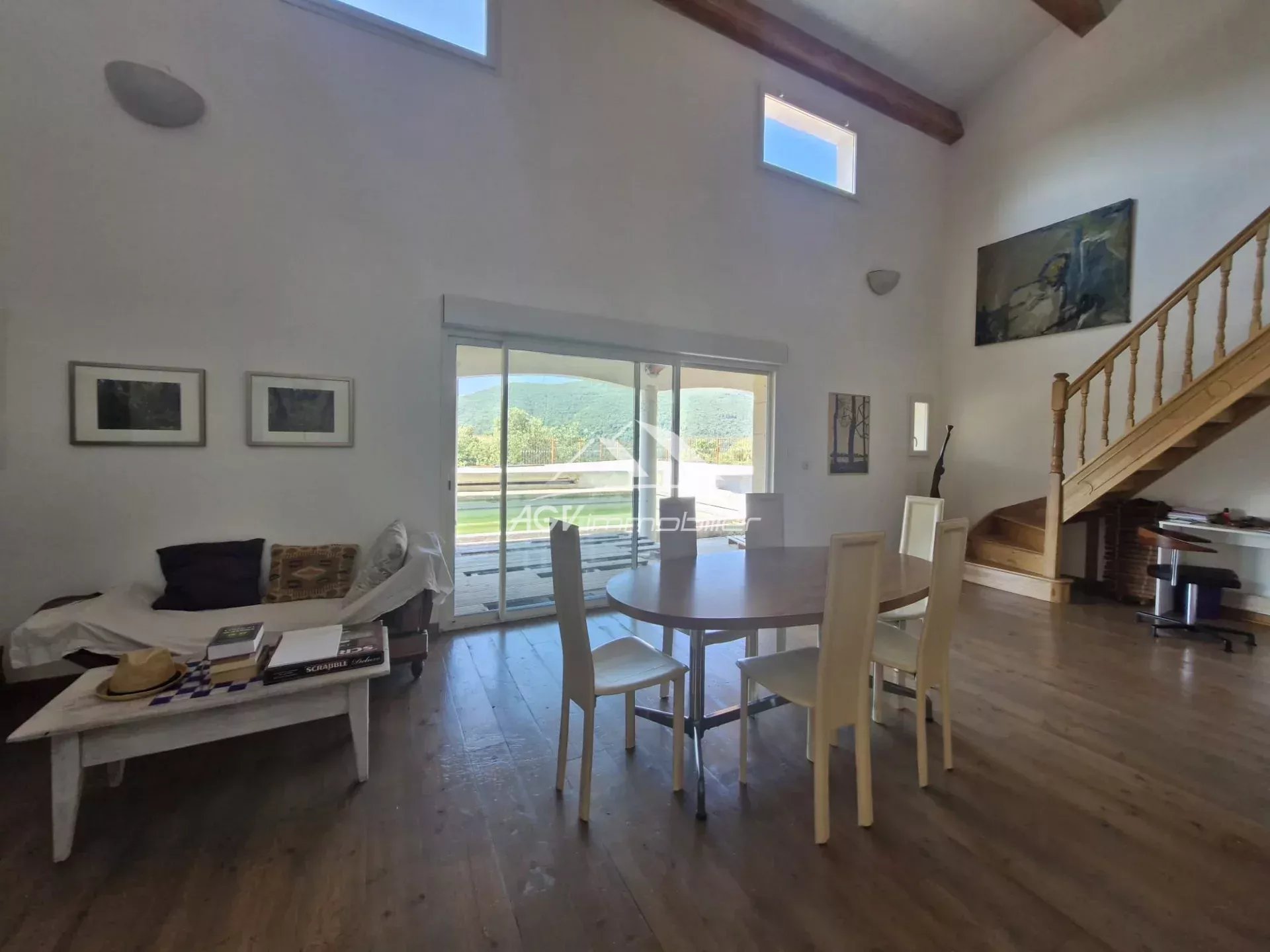Située sur la commune de Saint-Florent-Sur-Auzonnet au calme, avec une vue panoramique , maison d'environ 160 m² sur 11254 m² de terrain se compose en rez-de-chaussée d'une cuisine ouverte sur un vaste séjour donnant sur une terrasse avec piscine, une buanderie, une chambre, une salle de bain et un toilette séparé, l'étage donne accès à une deuxième terrasse avec vue, deux chambres dont une avec salle d'eau et un toilette séparé.